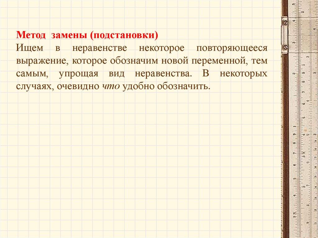 Метод замены (подстановки)Ищем в неравенстве некоторое повторяющееся