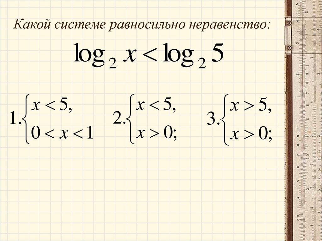 Какой системе равносильно неравенство:log 2 x log 2 5