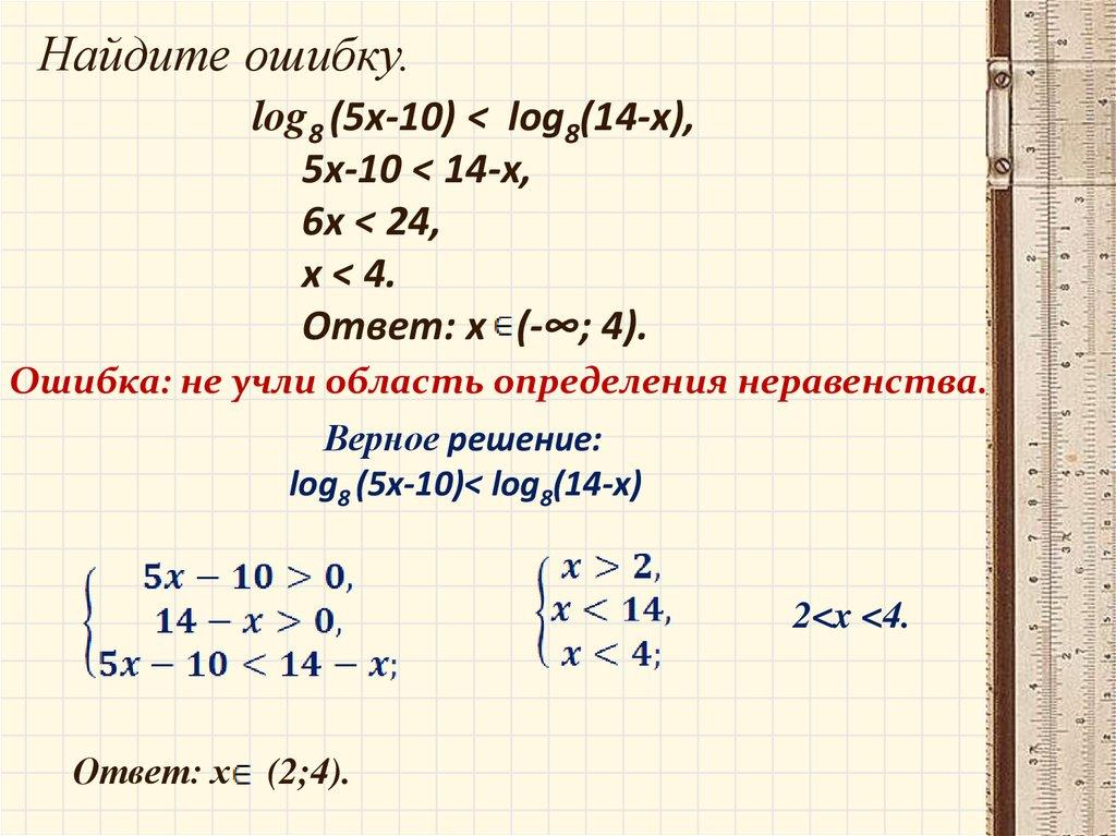 Найдите ошибку.log8 (5х-10) < log8(14-х),
