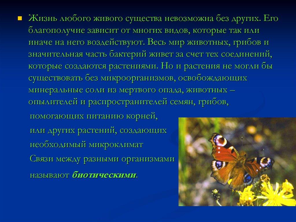 Жизнь любого живого существа невозможна без других. Егоблагополучие зависит от многих видов, которые так или