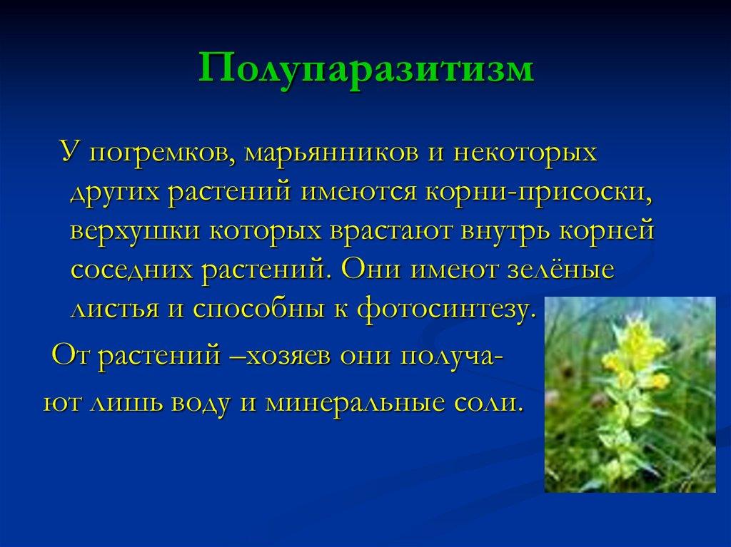 У погремков, марьянников и некоторыхдругих растений имеются корни-присоски,