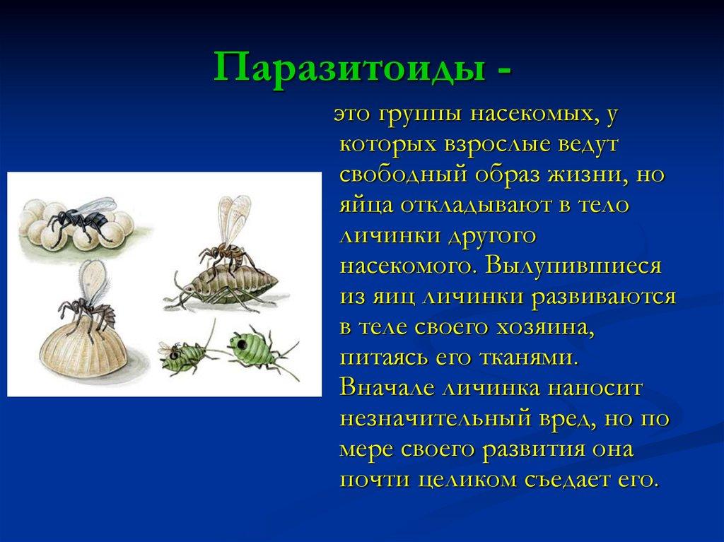 Паразитоиды это группы насекомых, укоторых взрослые ведут