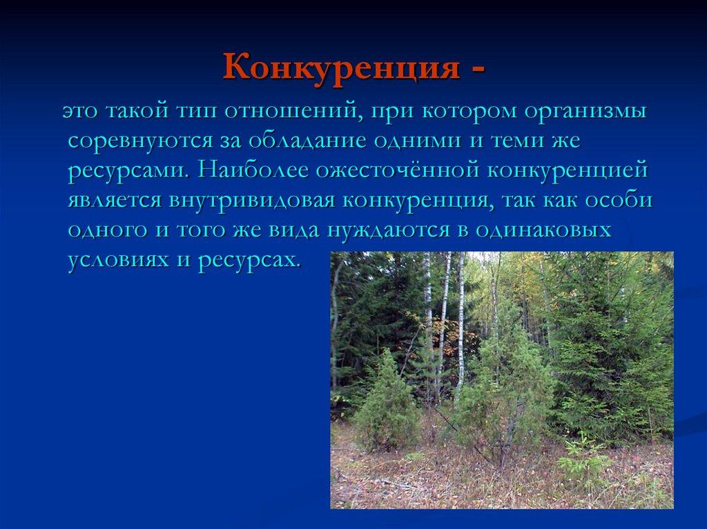 Конкуренция это такой тип отношений, при котором организмысоревнуются за обладание одними и теми же