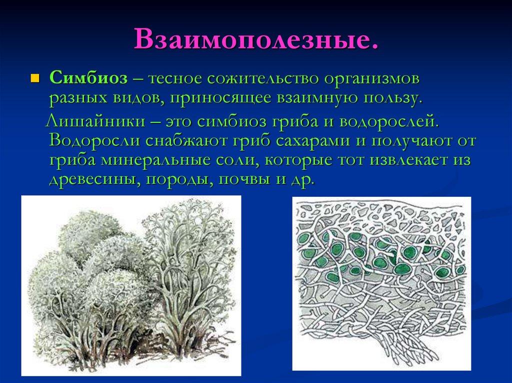 Симбиоз – тесное сожительство организмовразных видов, приносящее взаимную пользу.