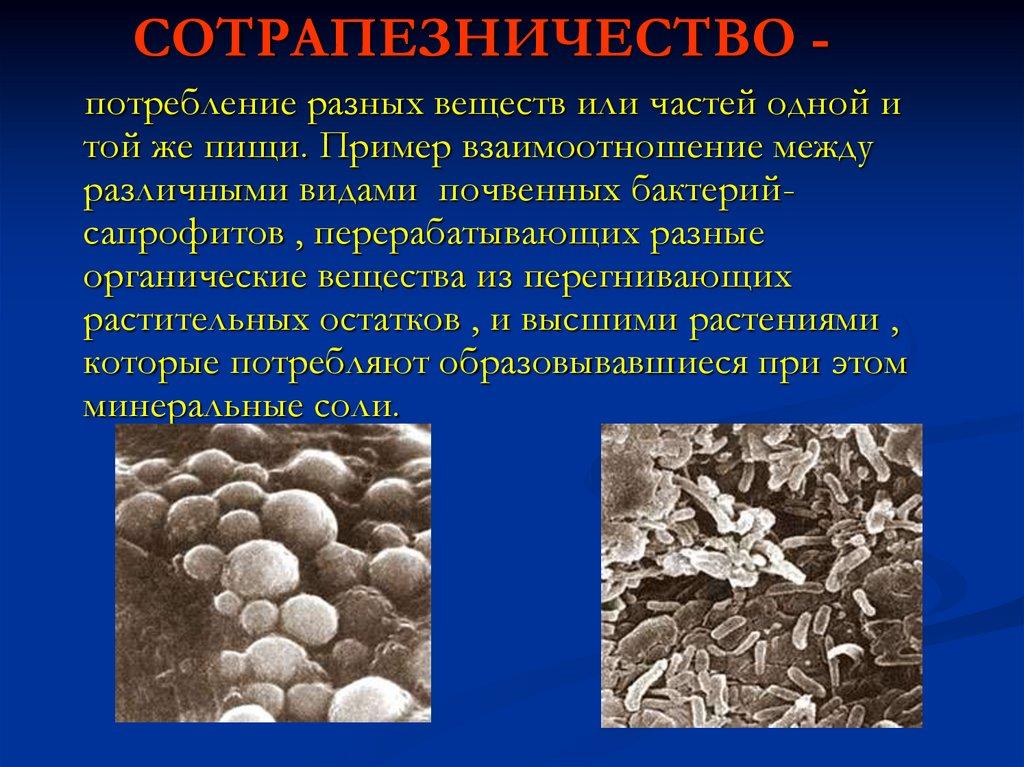 СОТРАПЕЗНИЧЕСТВО потребление разных веществ или частей одной итой же пищи. Пример взаимоотношение между