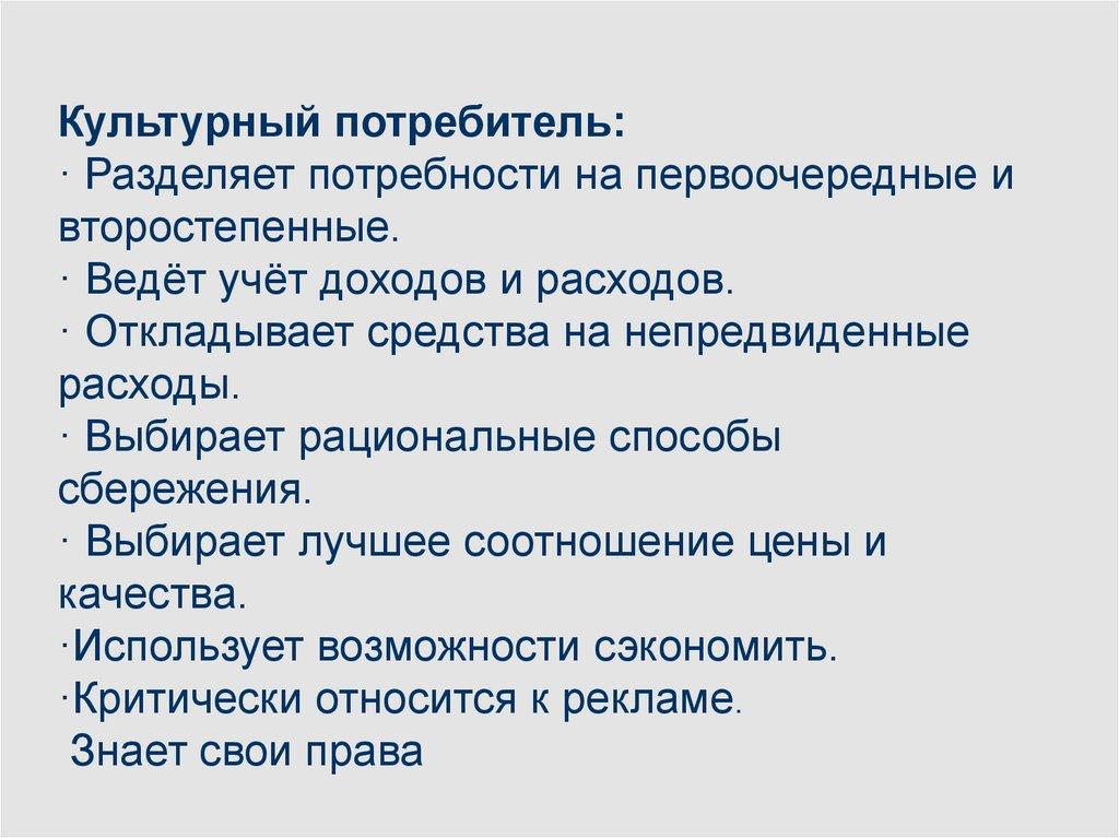 Культурный потребитель:· Разделяет потребности на первоочередные и