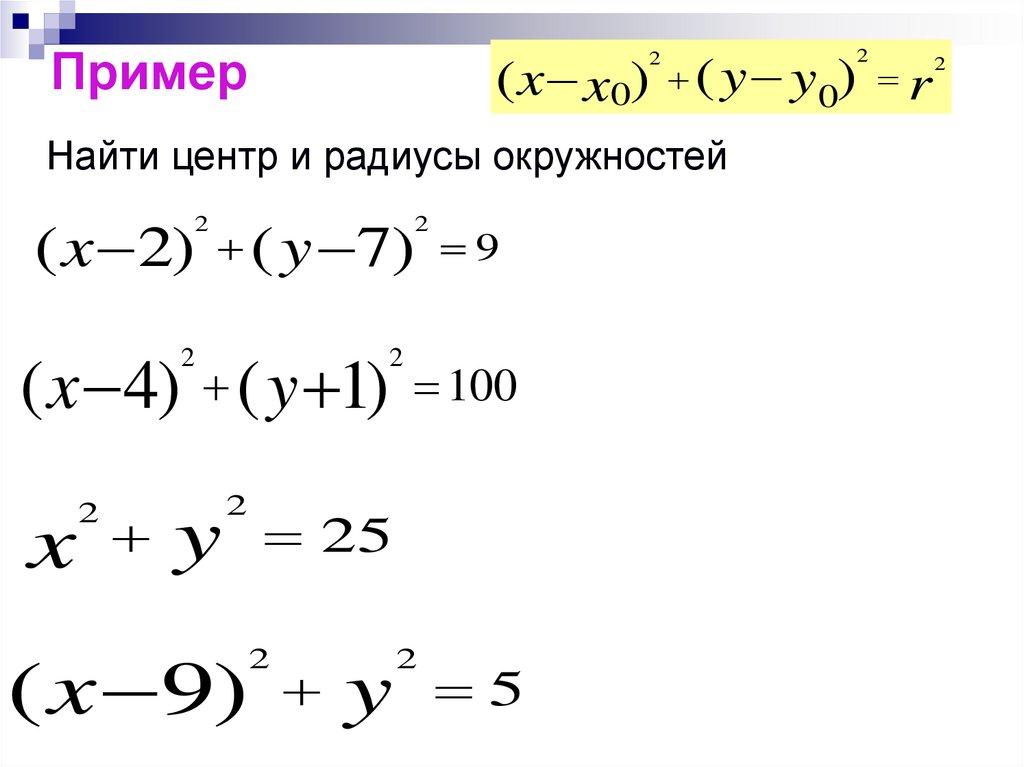 Найти центр и радиусы окружностей