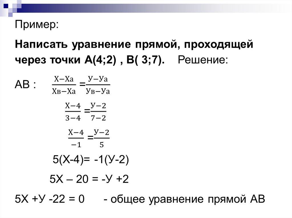 10. Уравнение прямой, проходящей через две точки