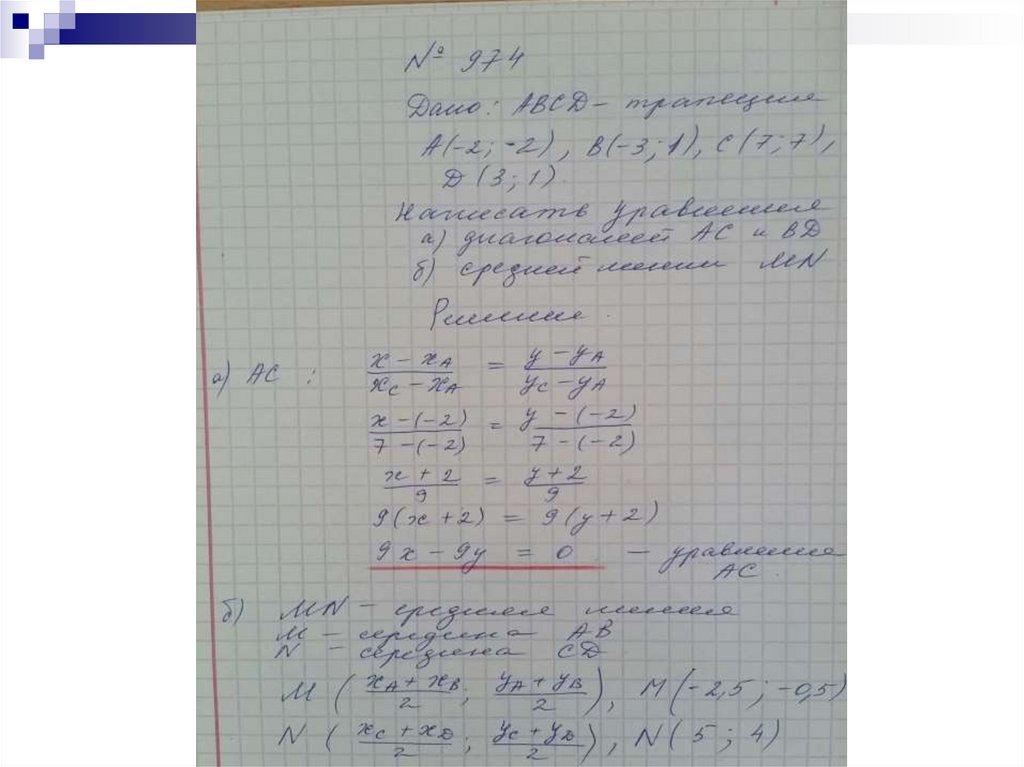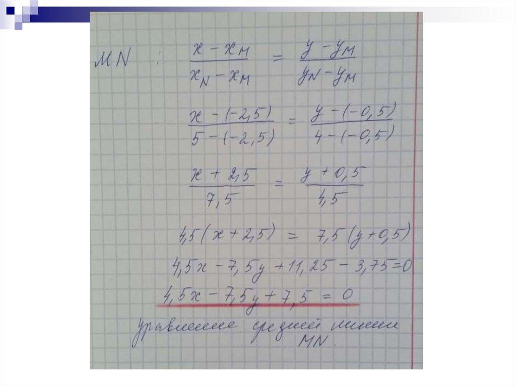 - уравнение средней линии MN
