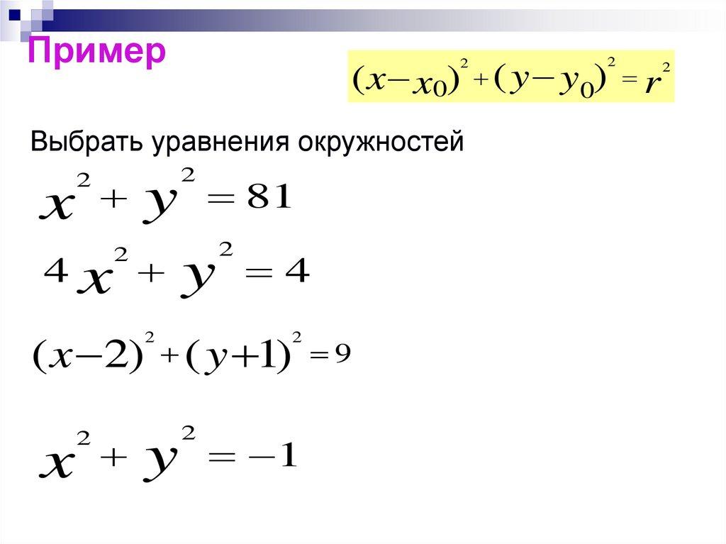Выбрать уравнения окружностей