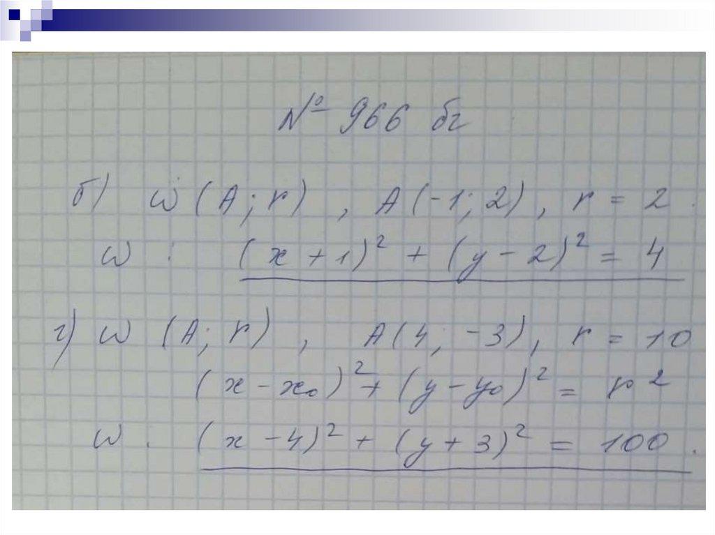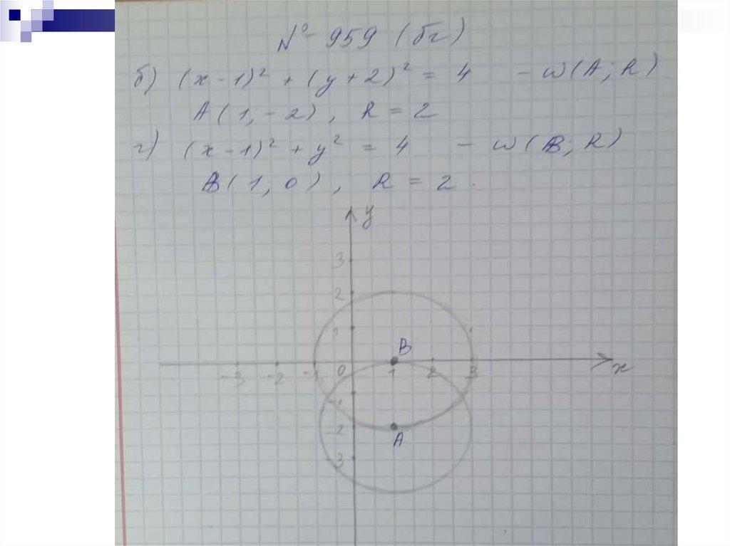 г) с центром в точке А(-1 ; 2 ) радиуса 2 2