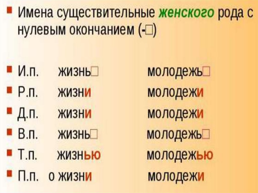 Имена существительные женскогорода с нулевым окончанием