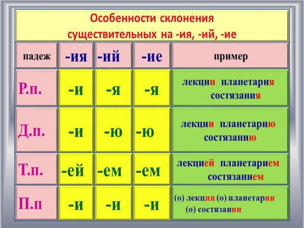 заканчивающиеся на -ИЯ, -ИЕ, -ИЙ. На основании этой информации и