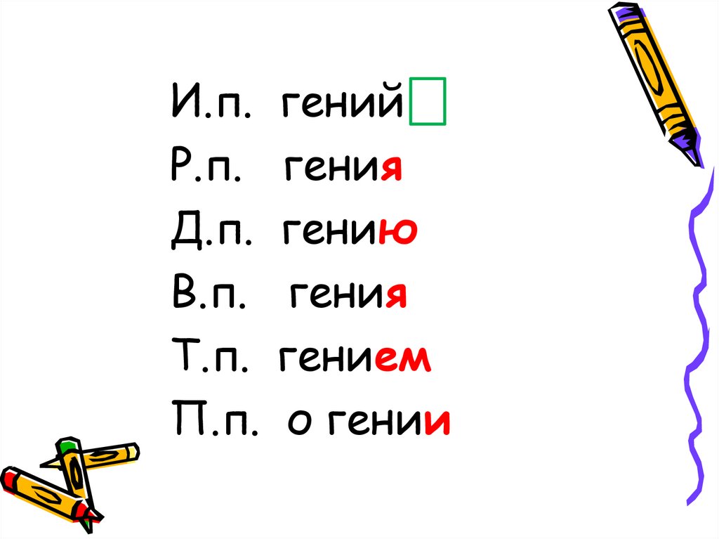 13. Особенность склонения существительных на –ия, -ий, -ие