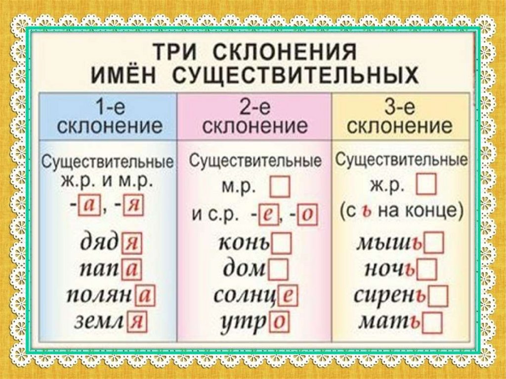 5. Три склонения имен существительных