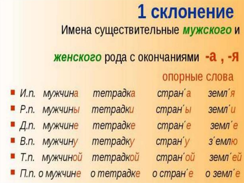 1. Склонение имен существительных