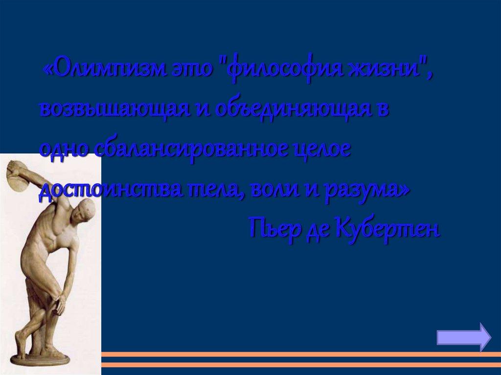 «Олимпизм это "философия жизни",возвышающая и объединяющая в