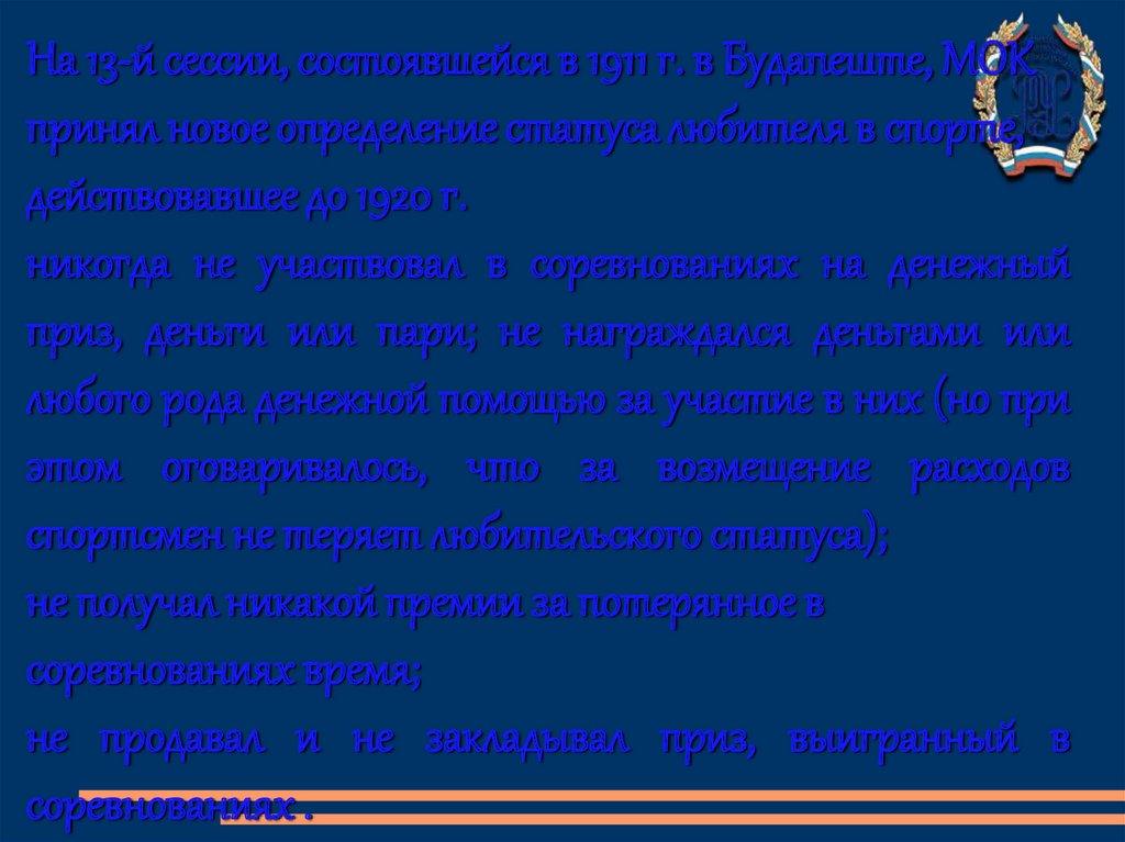 хартии, определявший статус спортсменалюбителя. Это правило в редакции, принятой на