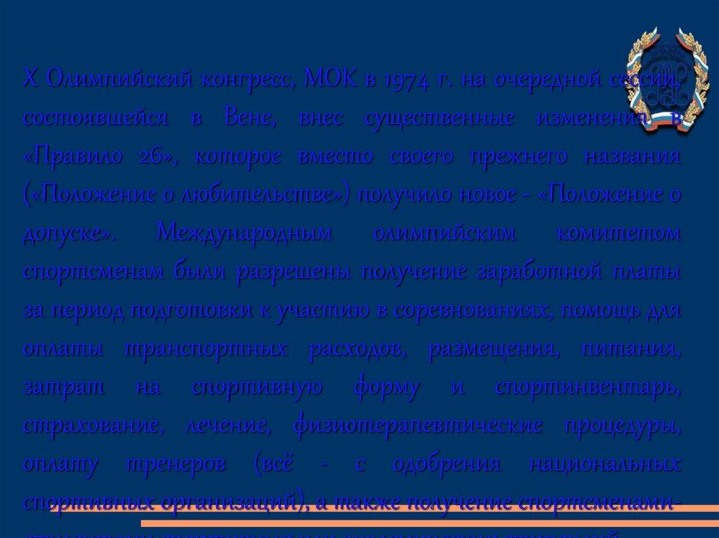 X Олимпийский конгресс, МОК в 1974 г. на очередной сессии,состоявшейся в Вене, внес существенные изменения в