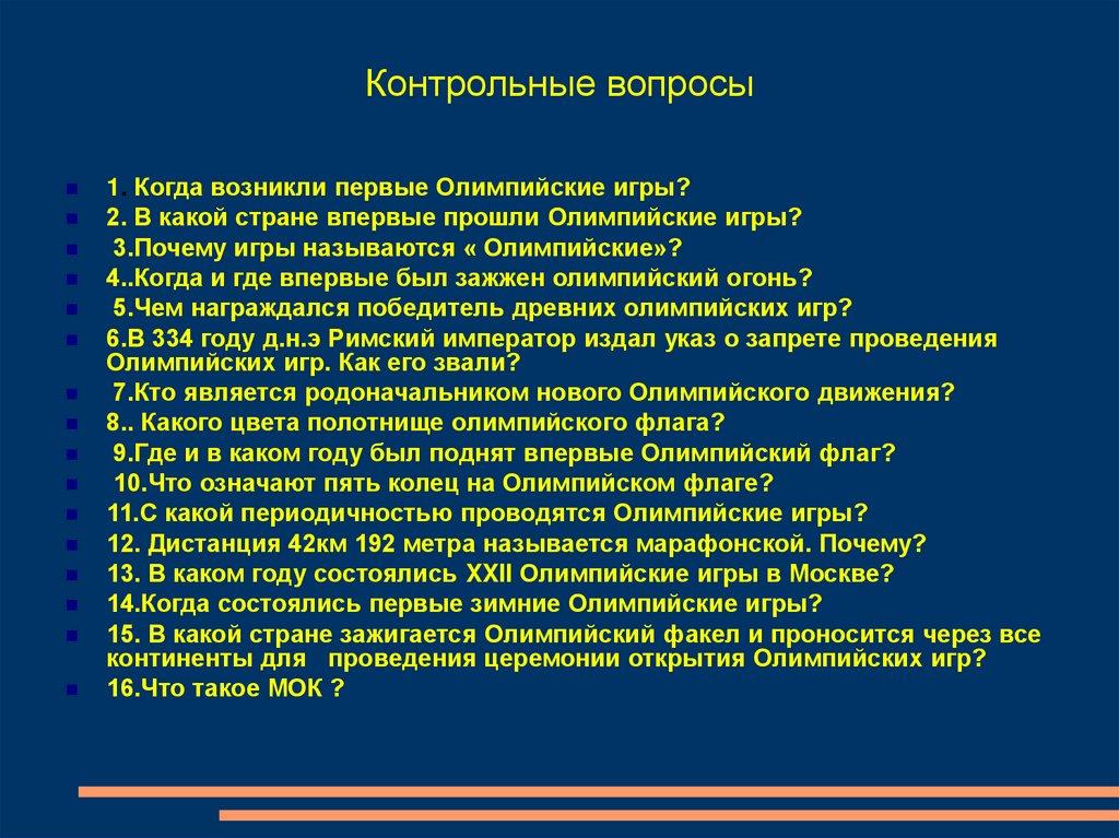 Контрольные вопросы1. Когда возникли первые Олимпийские игры?