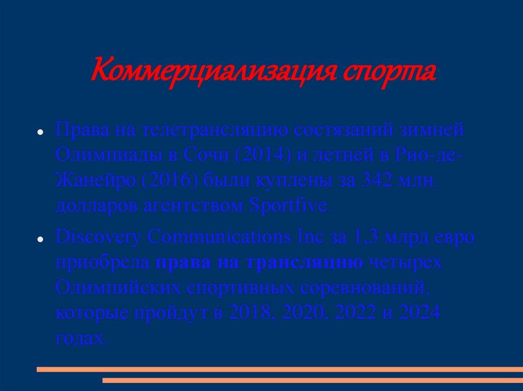Коммерциализация спортаПрава на телетрансляцию состязаний зимней