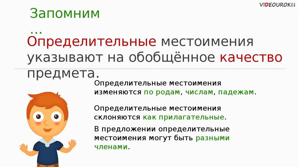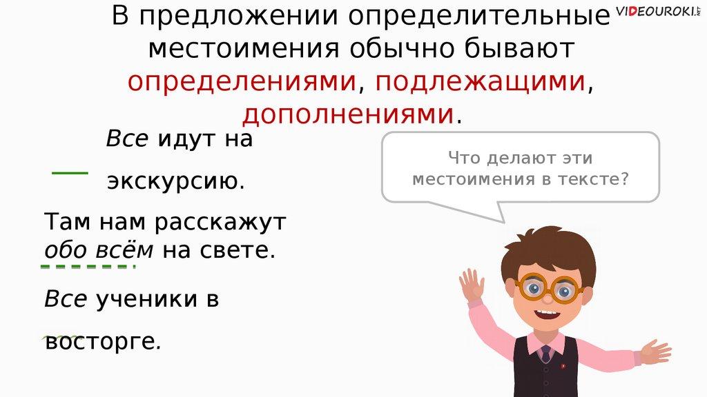 В предложении определительныеместоимения обычно бывают