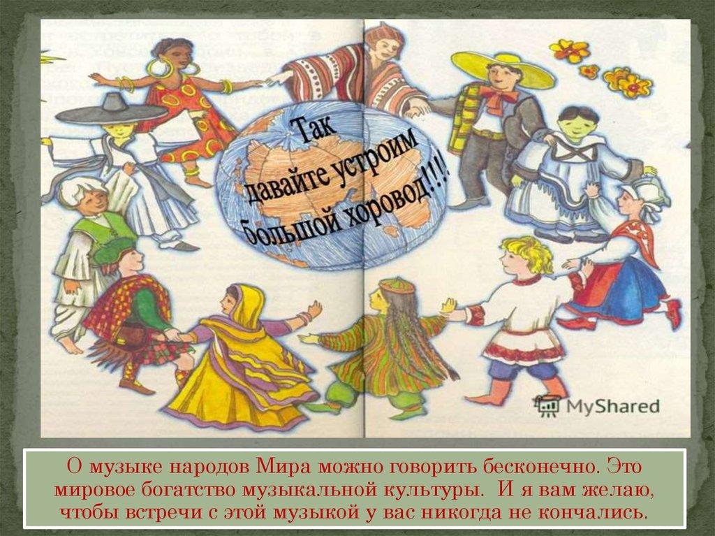 О музыке народов Мира можно говорить бесконечно. Этомировое богатство музыкальной культуры. И я вам желаю,