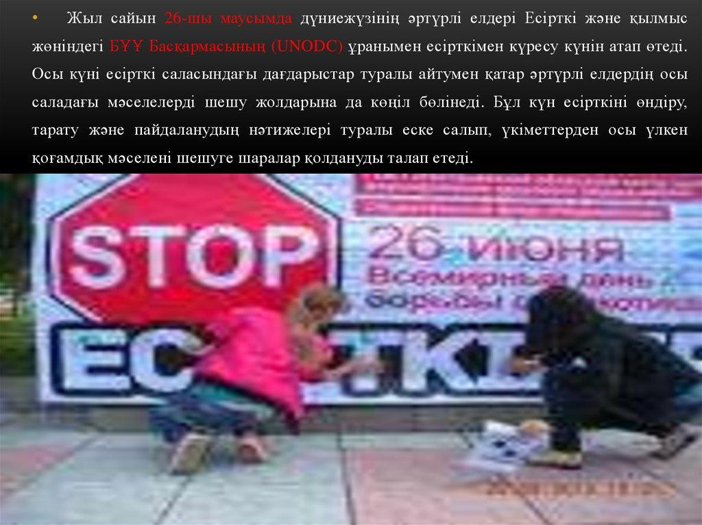 жөніндегі БҰҰ Басқармасының (UNODC) ұранымен есірткімен күресу күнін атап өтеді.