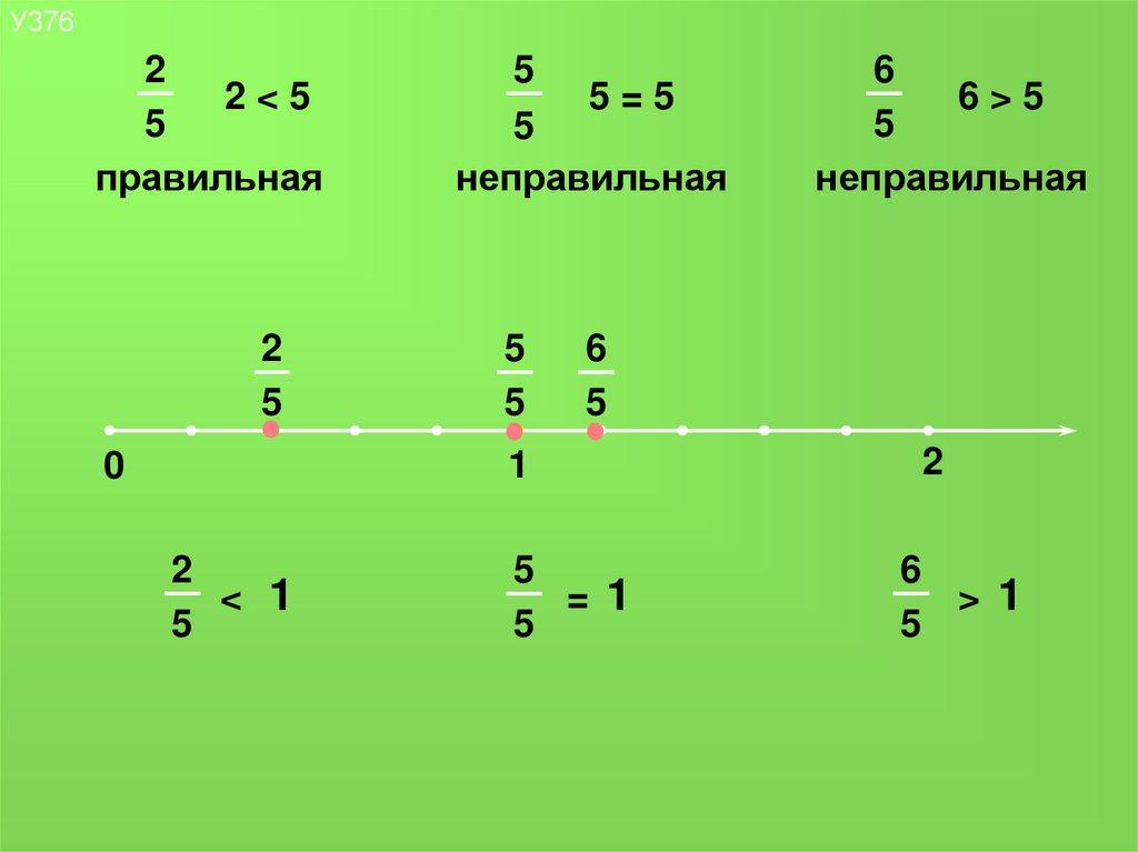 2) неправильная дробь больше или равна