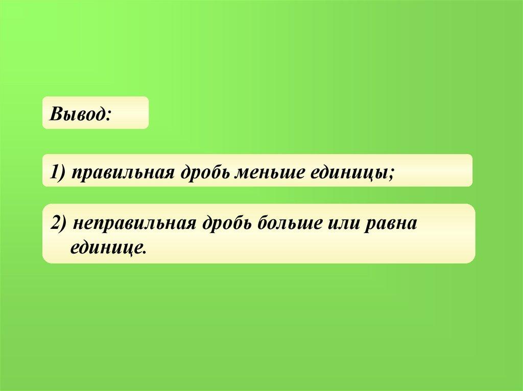Вывод:1) правильная дробь меньше единицы;