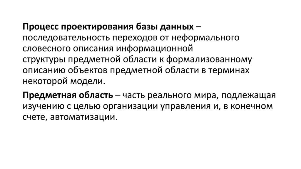 Процесс проектирования базы данных –последовательность переходов от неформального
