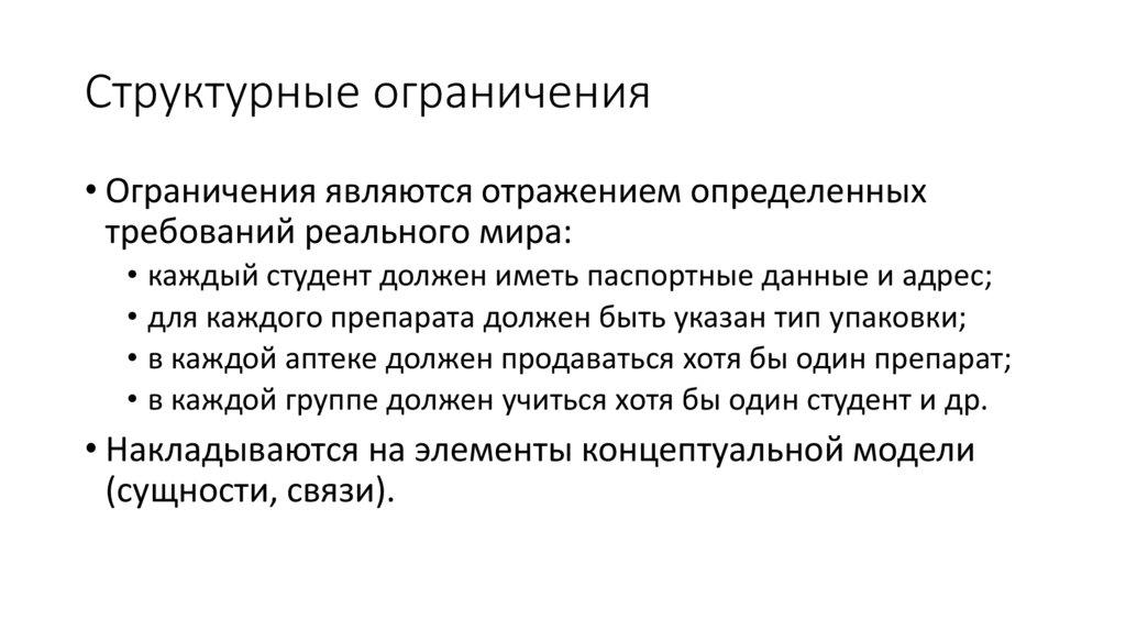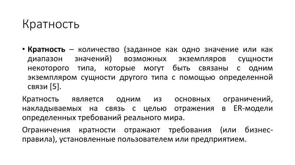 Ограничения кратности отражают требования (или бизнесправила), установленные пользователем или предприятием.