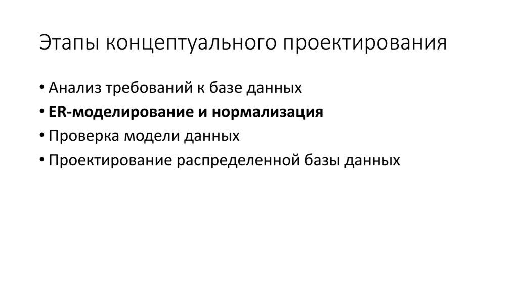 Этапы концептуального проектирования• Анализ требований к базе данных