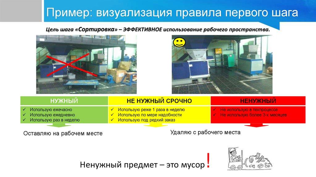 Пример: визуализация правила первого шагаЦель шага «Сортировка» – ЭФФЕКТИВНОЕ использование рабочего пространства.