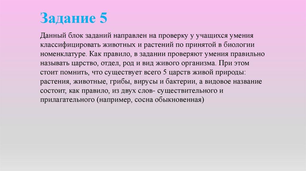 Задание 5Данный блок заданий направлен на проверку у учащихся умения