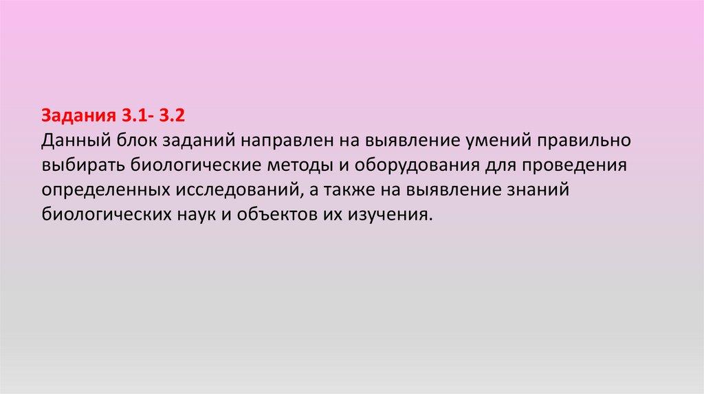 Задания 3.1- 3.2Данный блок заданий направлен на выявление умений правильно