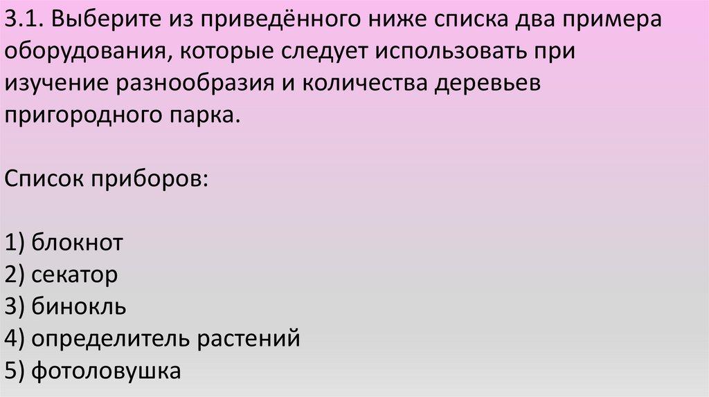 3.1. Выберите из приведённого ниже списка два примераоборудования, которые следует использовать при
