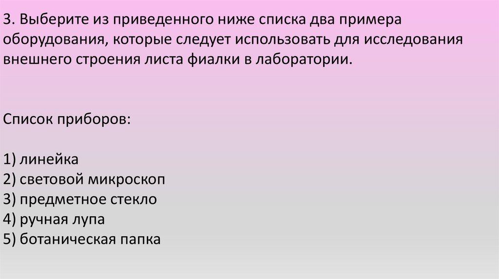 3. Выберите из приведенного ниже списка два примераоборудования, которые следует использовать для исследования