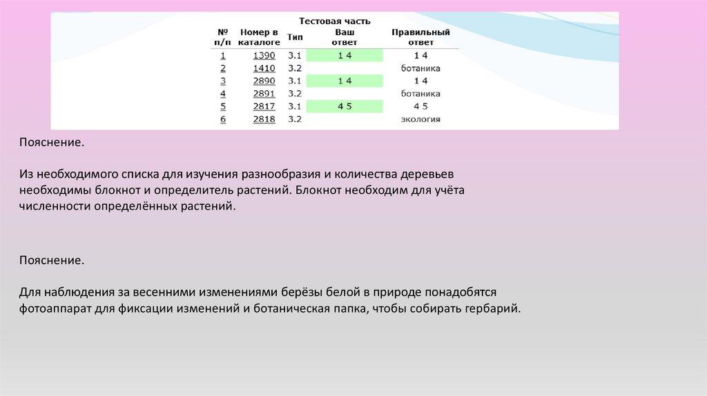 Пояснение.Из необходимого списка для изучения разнообразия и количества деревьев