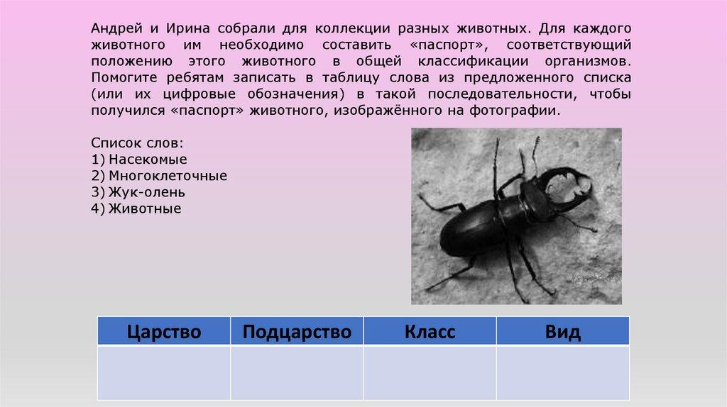 Андрей и Ирина собрали для коллекции разных животных. Для каждогоживотного им необходимо составить «паспорт», соответствующий