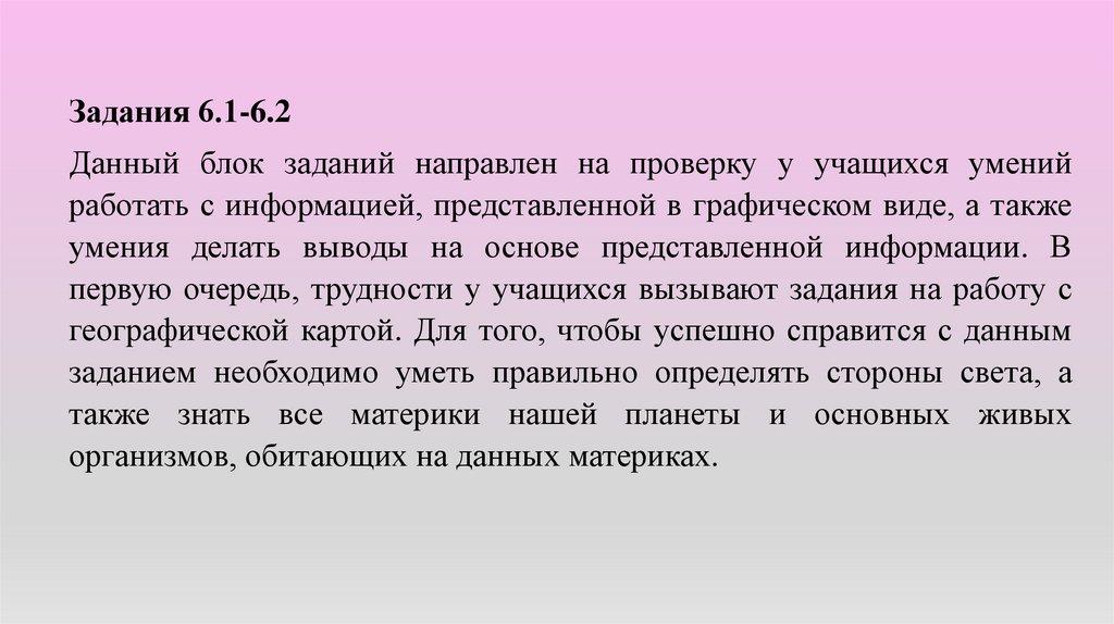 Задания 6.1-6.2Данный блок заданий направлен на проверку у учащихся умений