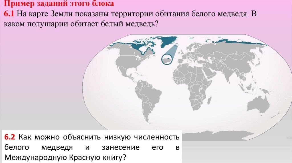 Пример заданий этого блока6.1 На карте Земли показаны территории обитания белого медведя. В