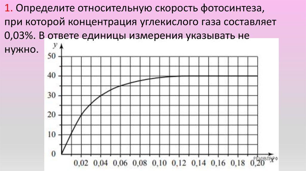 1. Определите относительную скорость фотосинтеза,при которой концентрация углекислого газа составляет