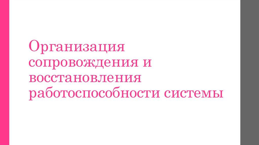• Организация сопровождения и восстановления работоспособности