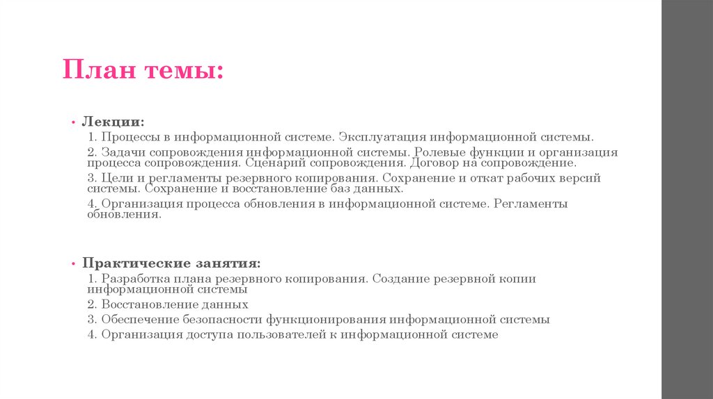 План темы:• Лекции: