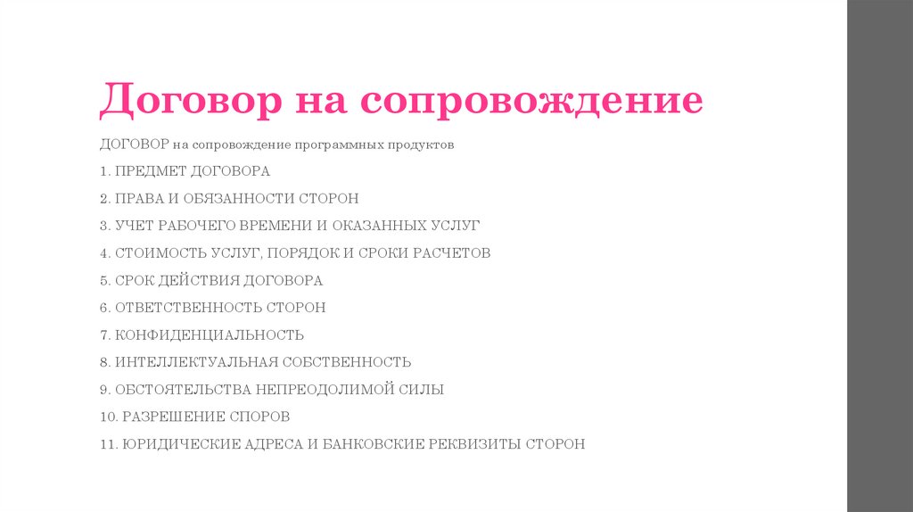 процесса сопровождения. Сценарий сопровождения. Договор на сопровождение.
