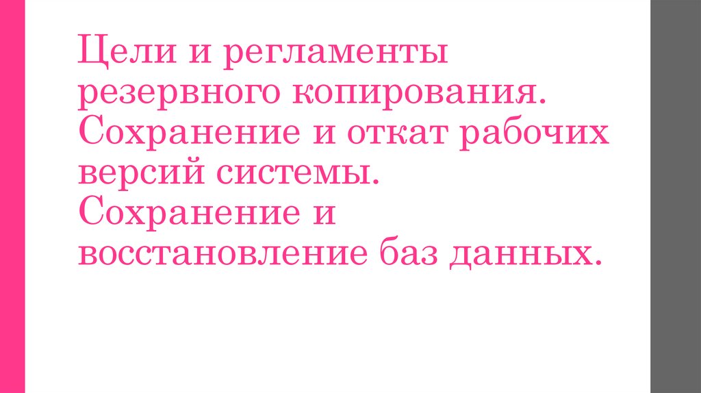 3. Цели и регламенты резервного копирования. Сохранение и откат рабочих версий