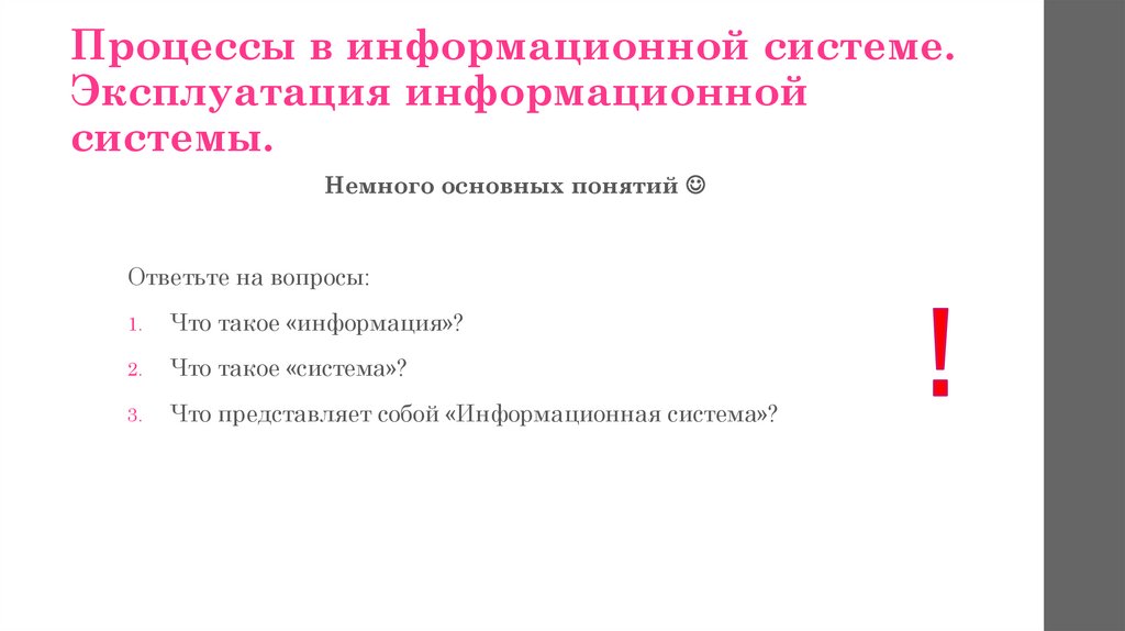 Процессы в информационной системе.Эксплуатация информационной