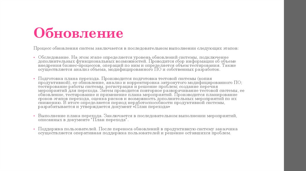 ОбновлениеПроцесс обновления систем заключается в последовательном выполнении следующих этапов: