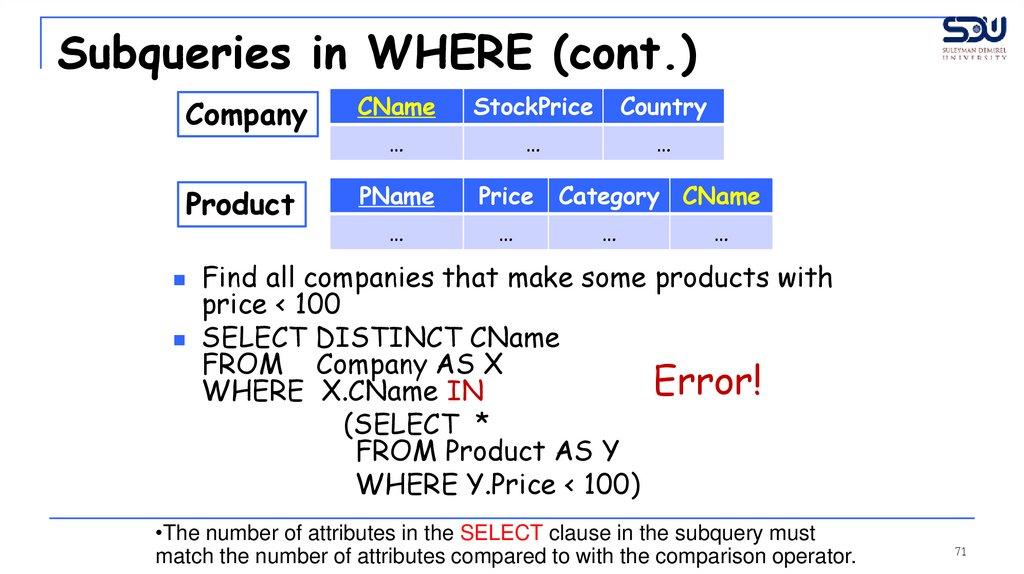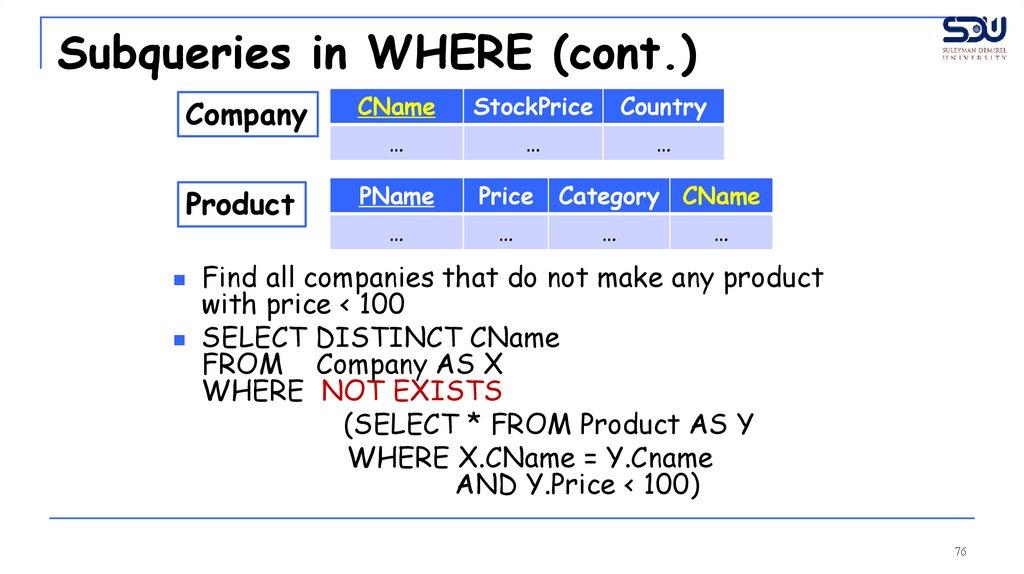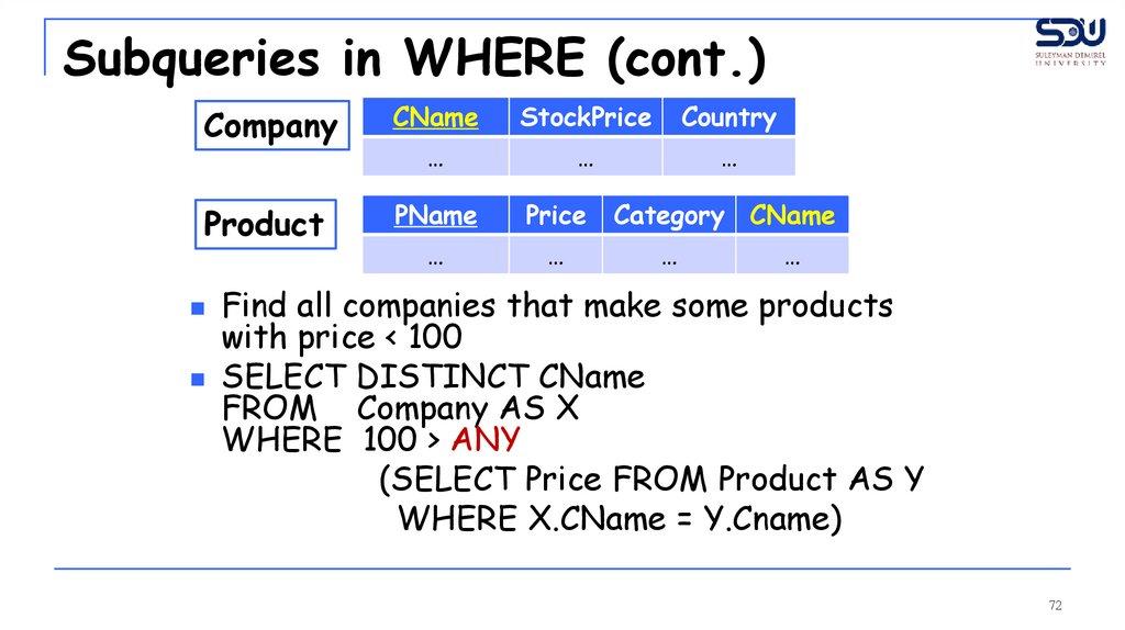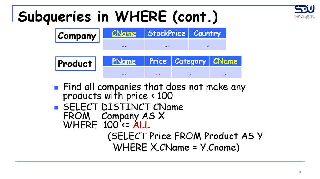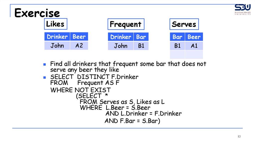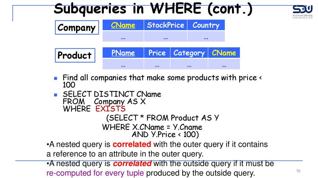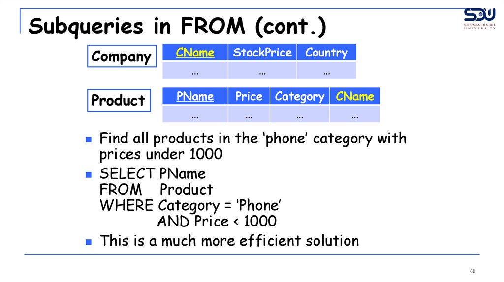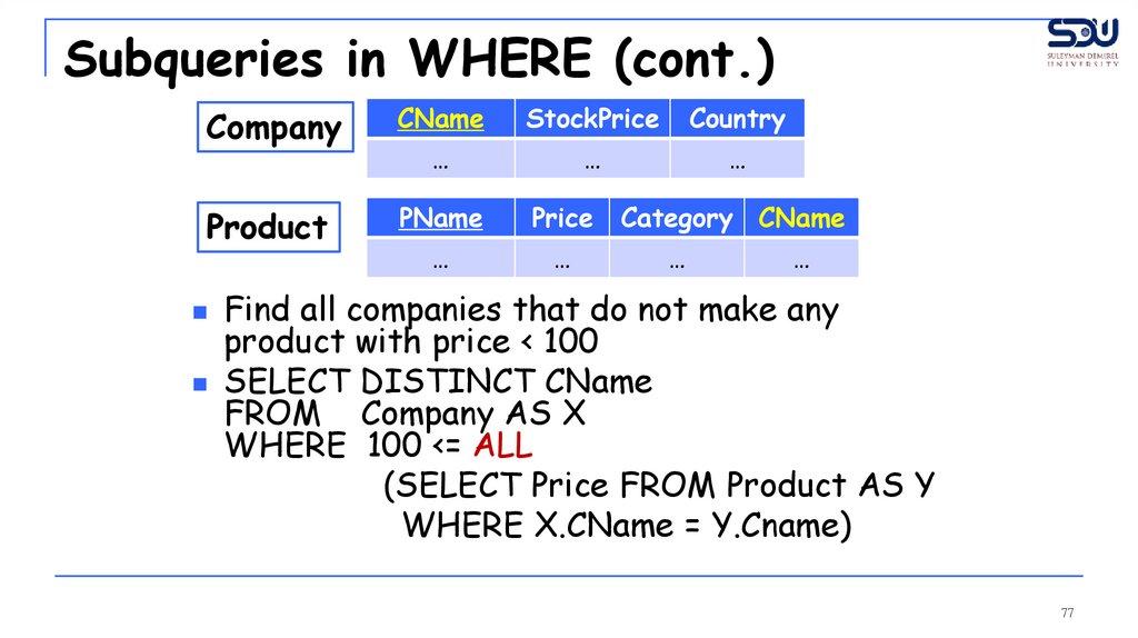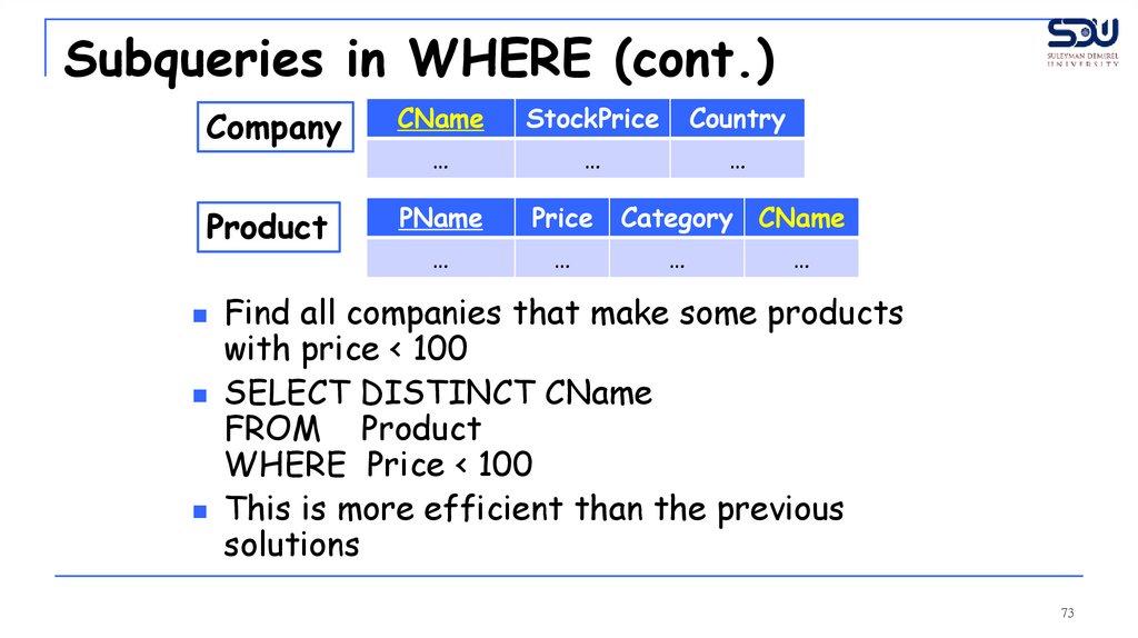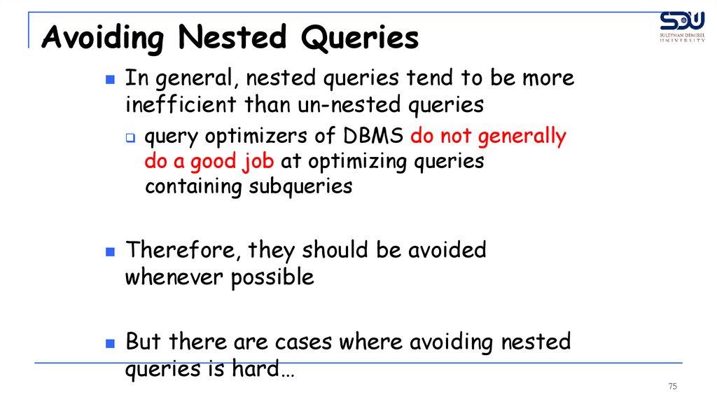Avoiding Nested QueriesIn general, nested queries tend to be more